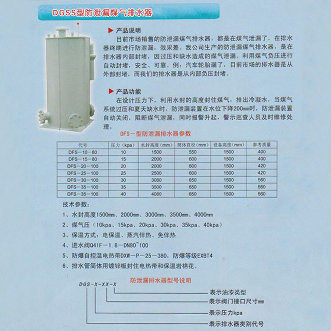DGSS型防泄漏煤气排水器