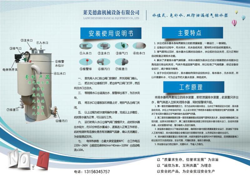 防泄漏煤气排水器使用说明书